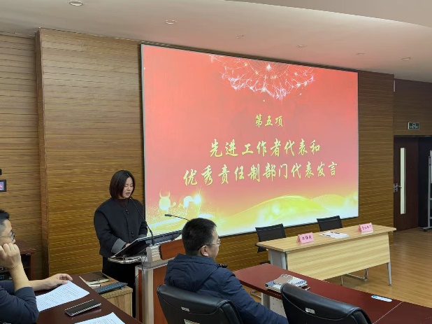 表彰现场,掌声雷动、暖意融融,能源所朱超、湖州办事处朱婷分别作为受表彰的先进工作者代表、优秀经济责任制部门代表发言,分享了工作心得与获奖感悟,表达了感恩奋进、再创佳绩的决心。